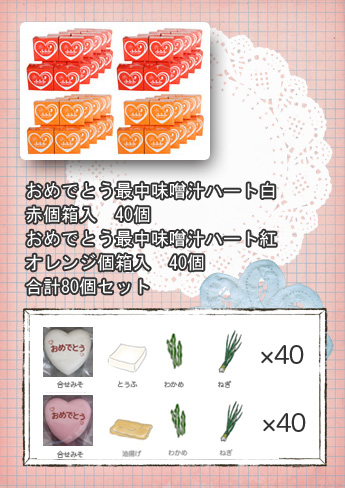 ハート白「おめでとう」最中味噌汁 赤箱入り