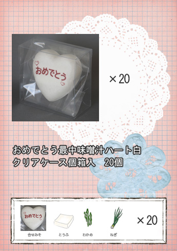 ハート白「おめでとう」最中味噌汁クリアケース入り